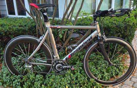 Up for sale is my ‘07 Litespeed Saber tt/tri bike - bought new, so I’m the only owner. Raced a bunch, but still in pristine condition. As pictured: full DA 7800, except crankset which is a FSA K-force Light SRM (wired, 175 mm, 53/39, comes with PC5 and charging & download cables) and BB which is a FSA ceramic. Front wheel is a Zipp 404, rear is a Flashpoint 80 - clinchers & rim brake. **Rubber on the front is decent, that on the rear is completely unrideable and just there to protect the rim. Saddle is a Fizik Arione Tri. CF bottle cages included, pedals are not.