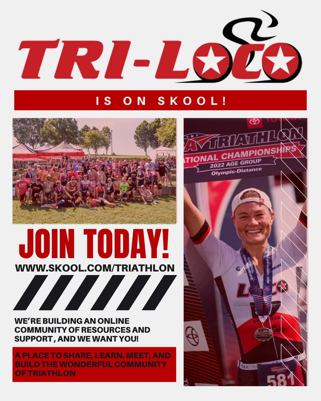 That’s why we launched Tri-Loco on Skool. It’s a new platform where triathletes can: